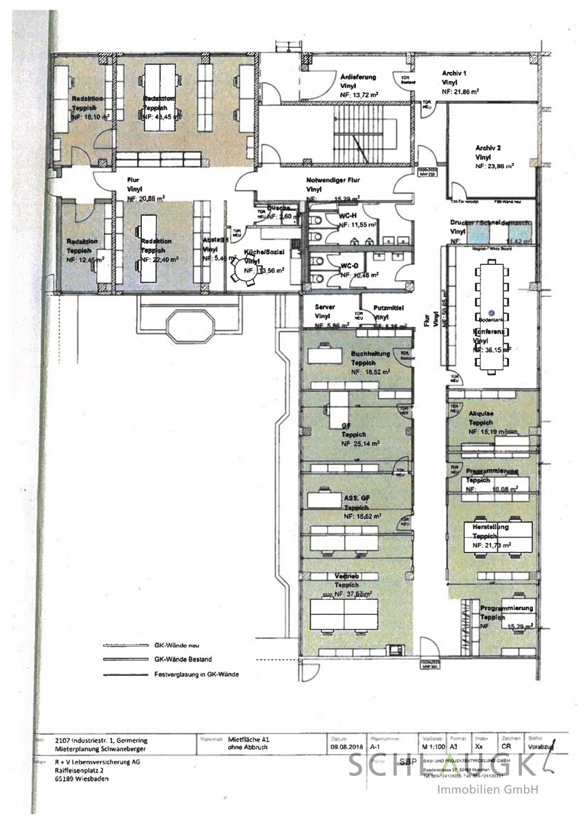 Es können unterschiedliche Flächen (219 qm - 240 qm - 520 qm) angemietet werden.