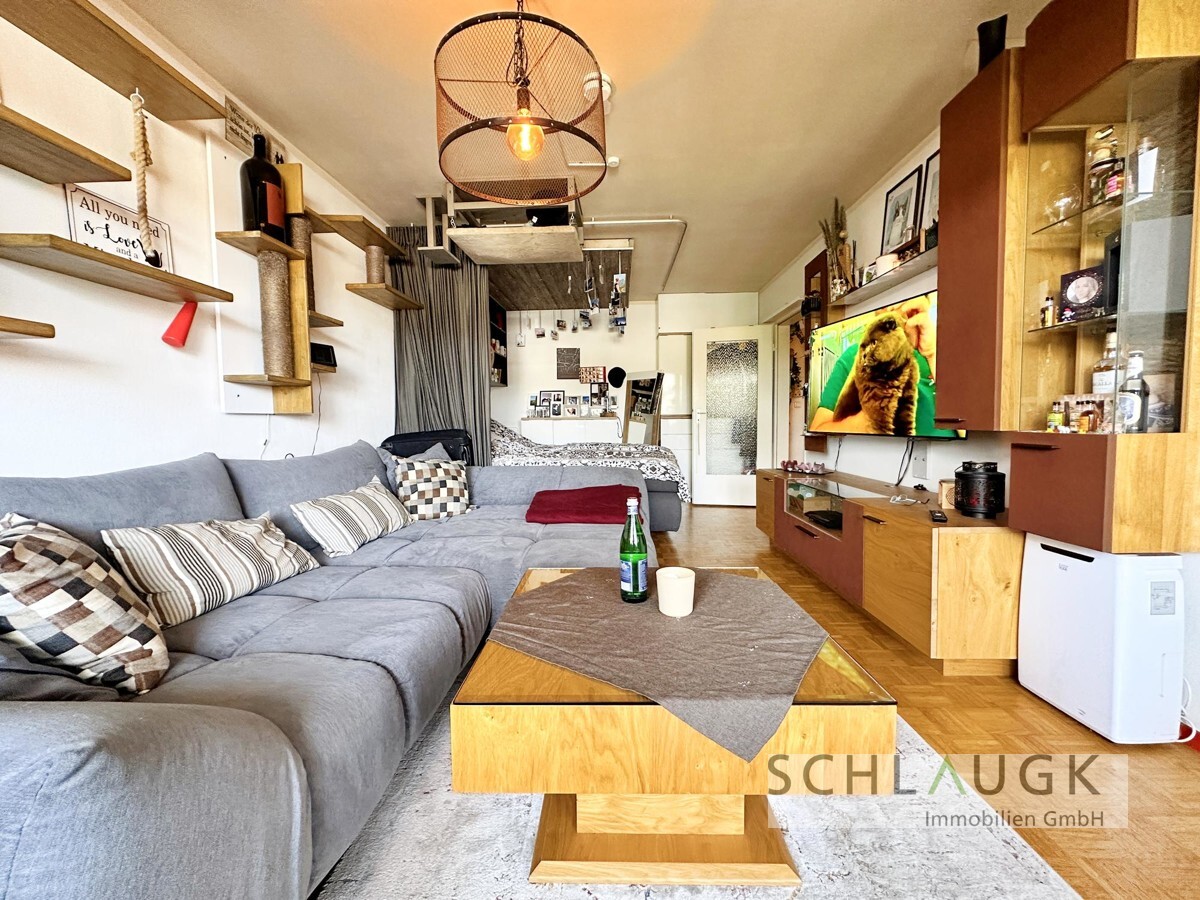 Der großzügige Wohn- und Schlafbereich ist lichtdurchflutet und bietet ausreichend Platz für individuelle Gestaltungsmöglichkeiten. Der angrenzende Balkon lädt zu entspannten Stunden im Freien ein und erweitert den Wohnraum ideal während der wärmeren Monate.