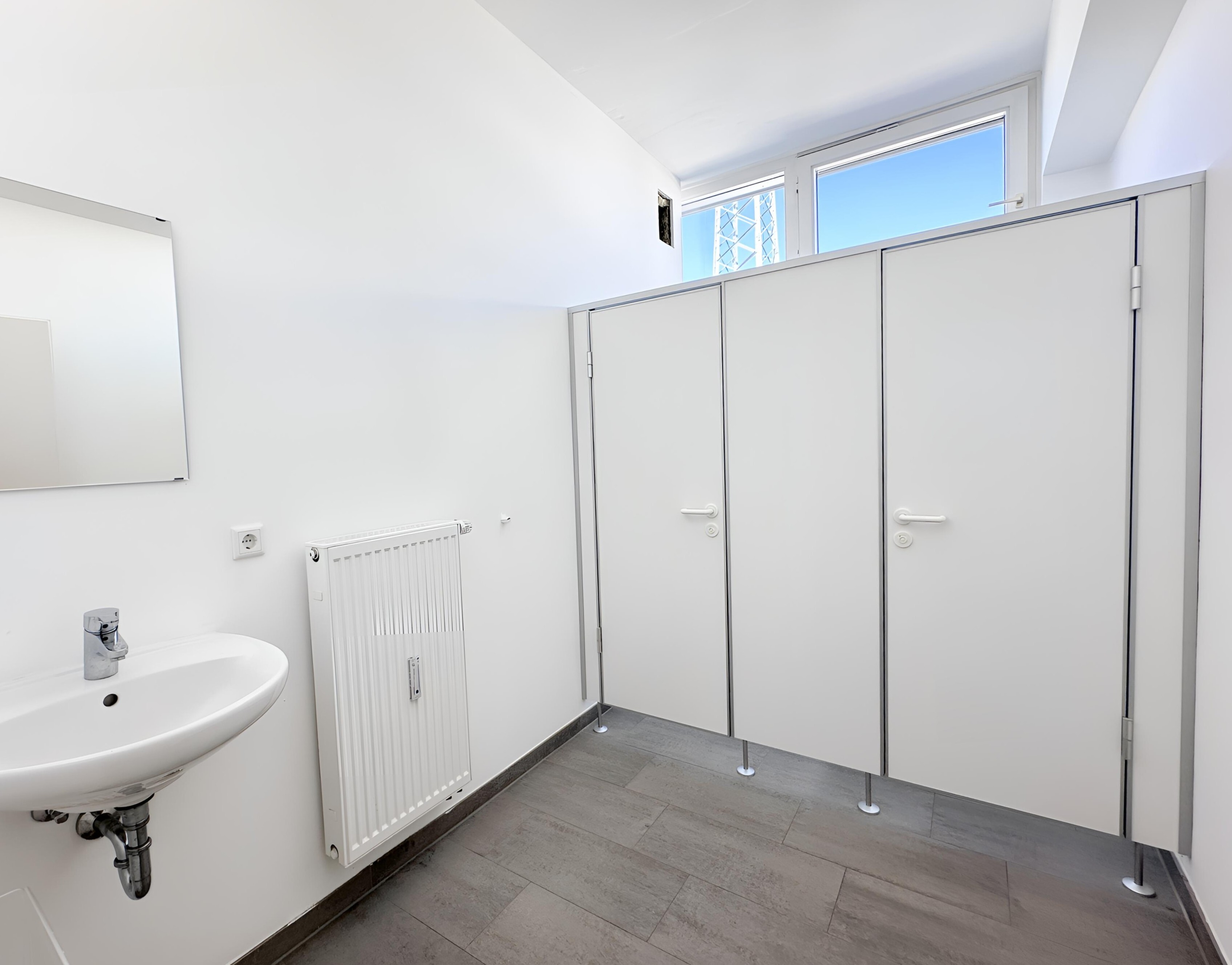 Die Ausstattung der Räumlichkeiten ist als normal zu bezeichnen und umfasst unter anderem einen Teppichboden als Bodenbelag. Außerdem gehört ein Außenstellplatz zur Büroetage, der zu einem Preis von 90 € angemietet werden kann. Zur weiteren Ausstattung gehören separate WC-Anlagen für Damen und Herren, die den Komfort im Büroalltag erhöhen.