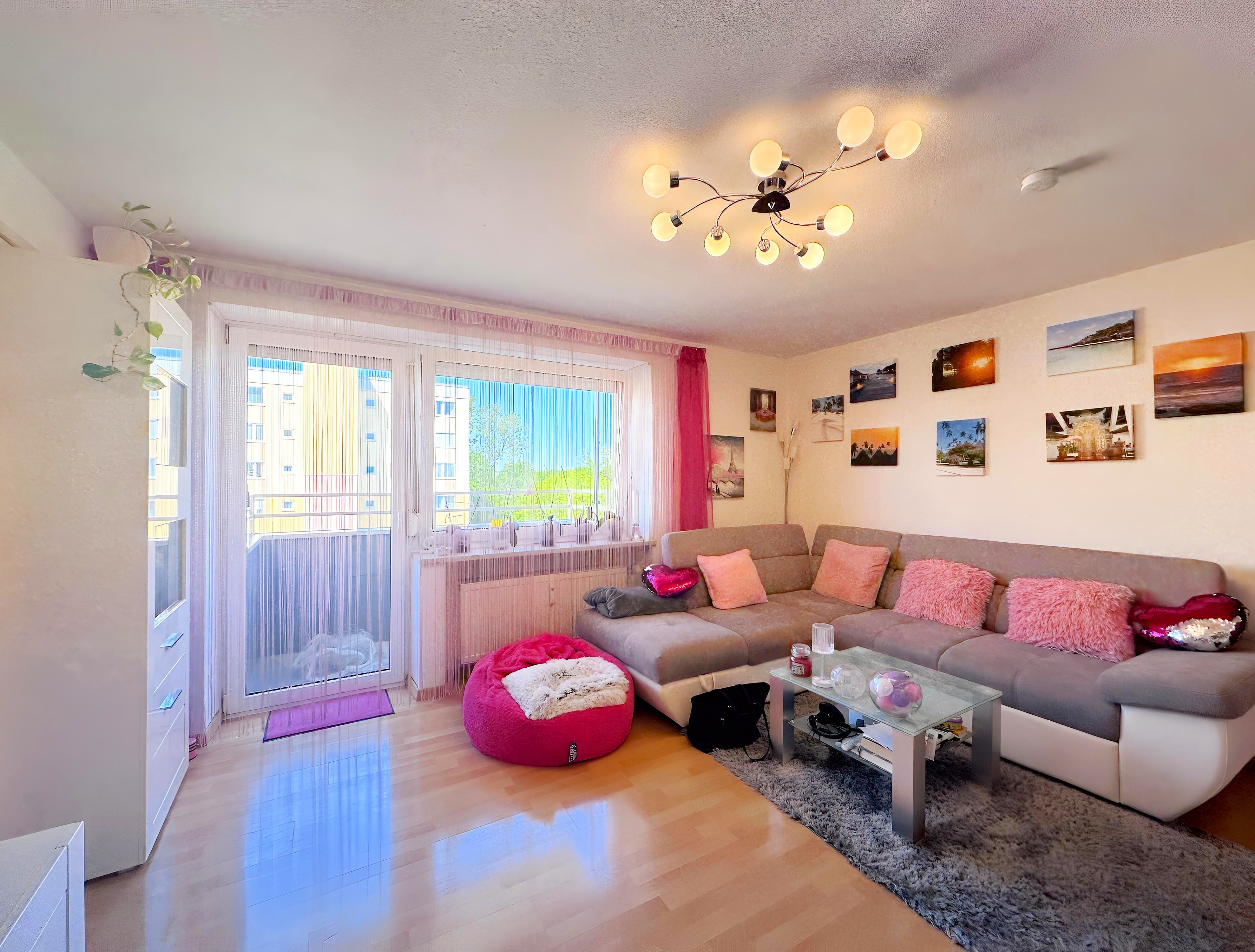 Der Bodenbelag besteht aus Fliesen in Küche und Bad sowie Laminat im Rest der Wohnung, was für eine angenehme Wohnatmosphäre sorgt.