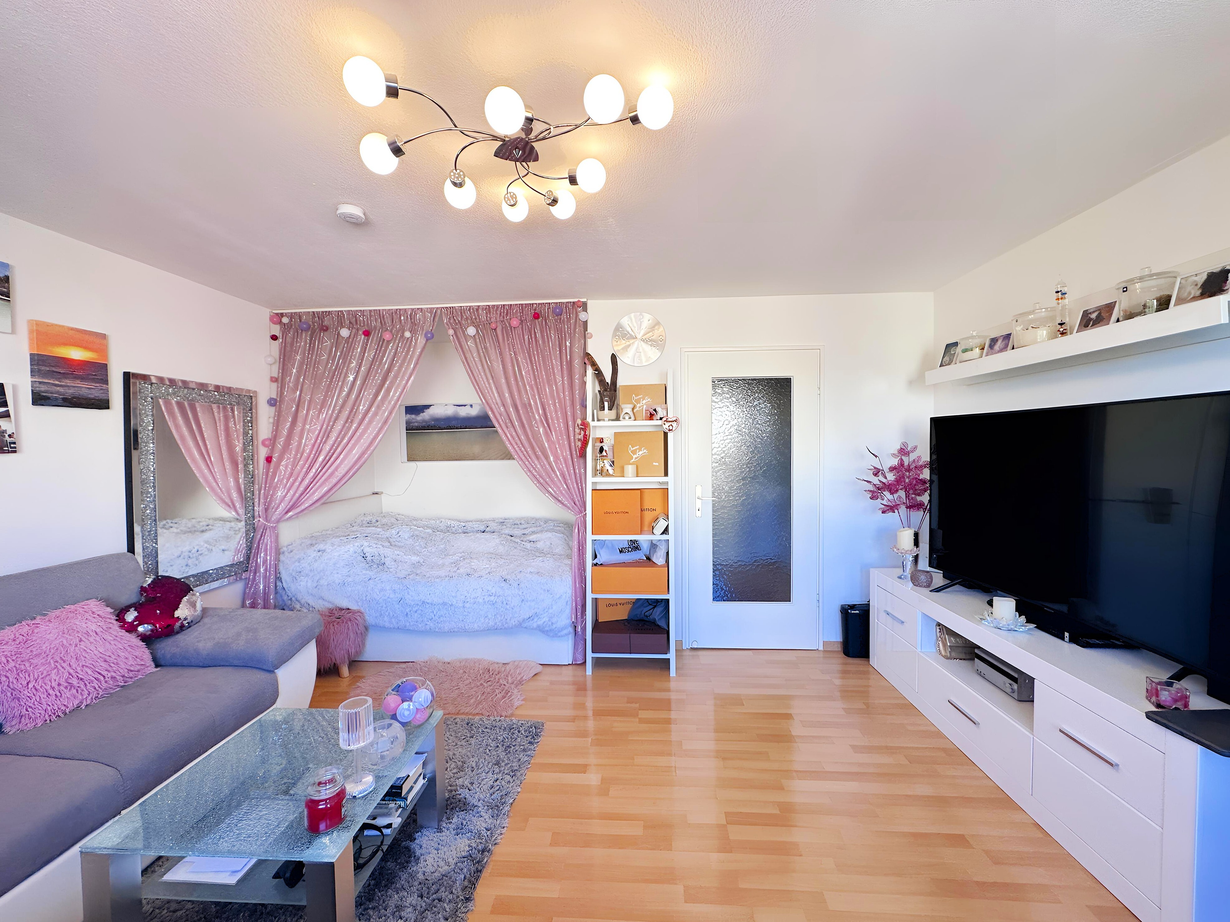 Die Wohnung ist sehr hell und in einem guten Zustand. Die Ausstattung umfasst eine praktische Einbauküche, die mit grundlegenden Geräten ausgestattet ist.