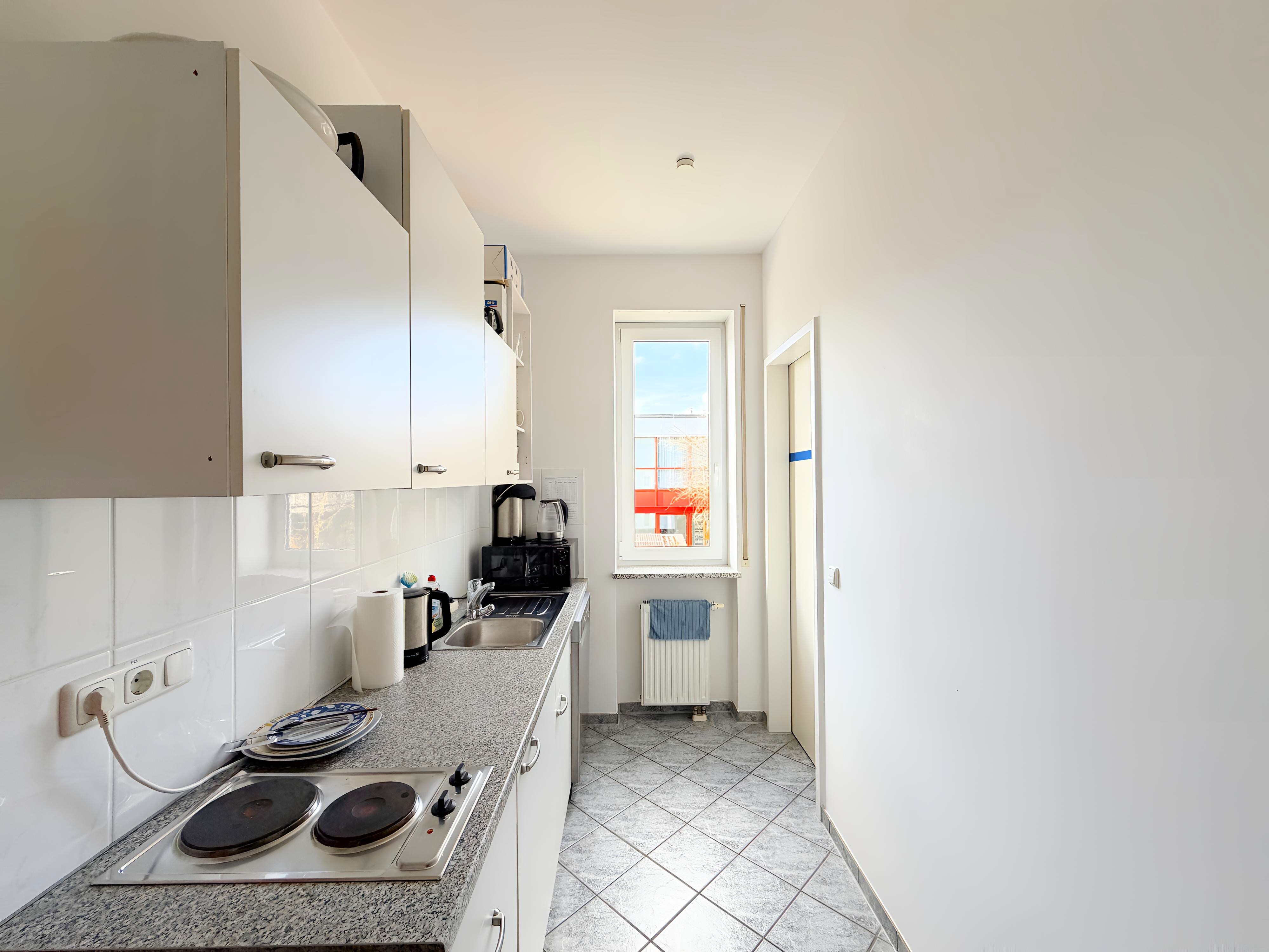 Zur Mitbenutzung stehen eine Gemeinschaftsküche und zwei separate Toiletten (Damen und Herren) zur Verfügung. Ein Außenstellplatz kann zusätzlich für 65 € monatlich angemietet werden.