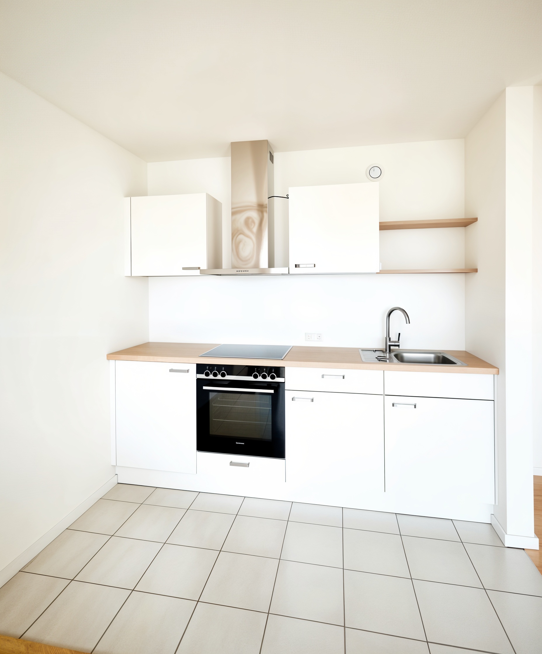 Die Wohnung verfügt über eine praktische Einbauküche inklusive Elektrogeräten, ein modernes Badezimmer mit Dusche sowie einen separaten Abstellraum, der zusätzlichen Stauraum bietet. Die Wohn- und Schlafbereiche sind mit Laminatboden ausgestattet, während Küche und Bad mit pflegeleichten Fliesen überzeugen.